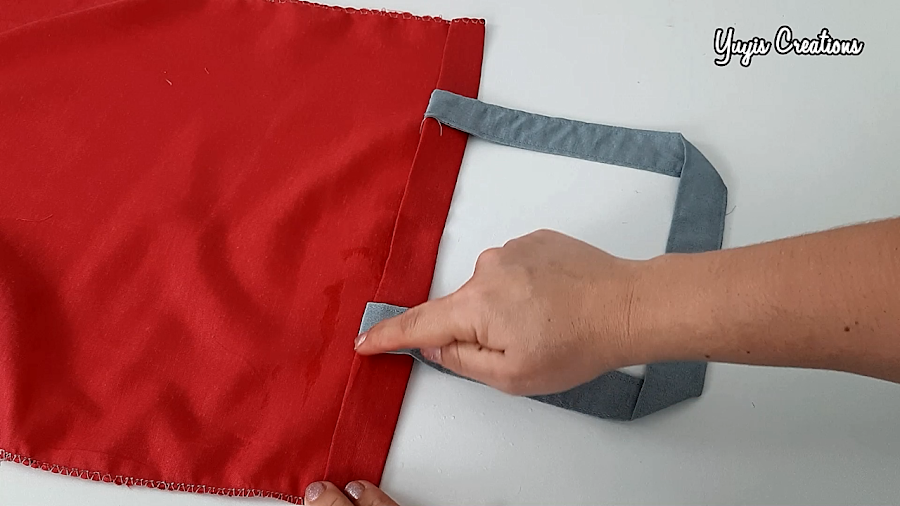 Ahora preparamos las asas y la colocamos en nuestro bolso sujetándolas con una puntada.