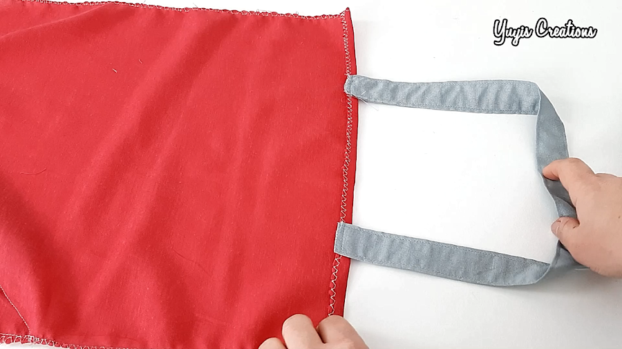Ahora volvemos a doblar pero esta vez a 2 cm, así como ves en la foto de abajo y volvemos a planchar, luego cosemos por el borde y sobre las asas.