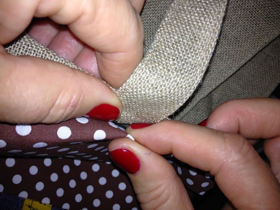 - Para el forro coseremos los dos cabos de la tela y coseremos el bajo como hemos hecho con la tela de saco.