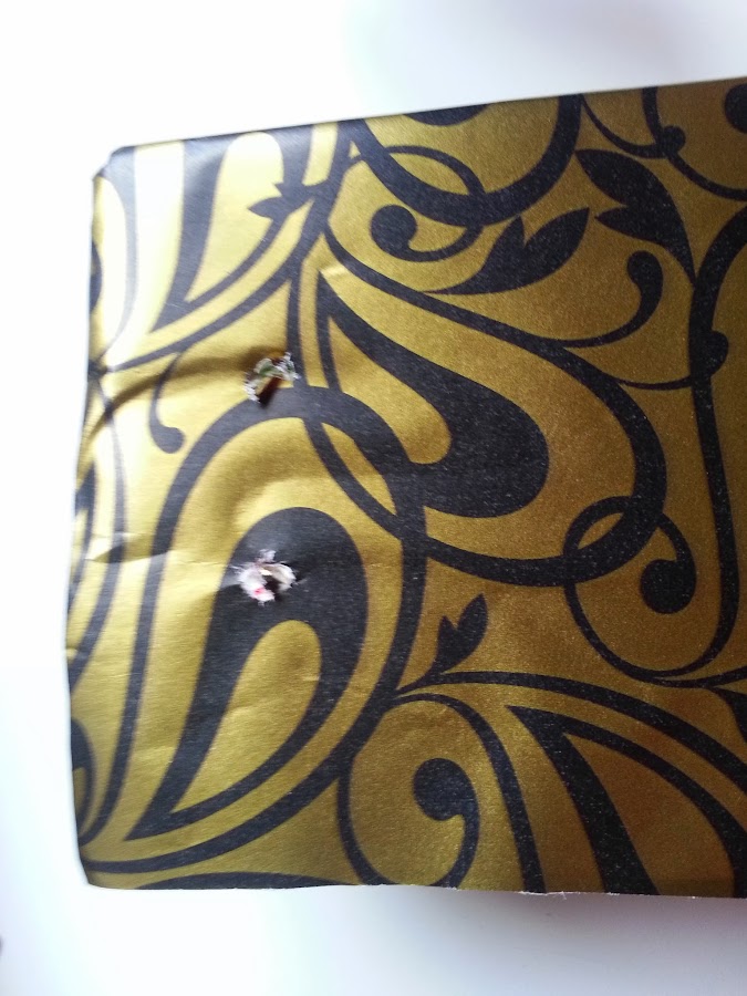 8) Por los agujeros introducimos la cinta decorativa y haremos dos nudos para que quede bien cerrada.