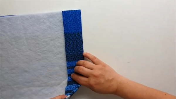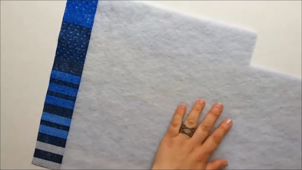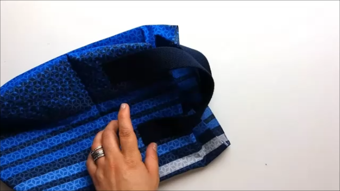 Pieza isotérmica Una vez que cortemos las telas, vamos a empezar por la pieza isotérmica, vamos a doblarla a la mitad y vamos a coser por los laterales, tal y como verás en la siguiente foto: