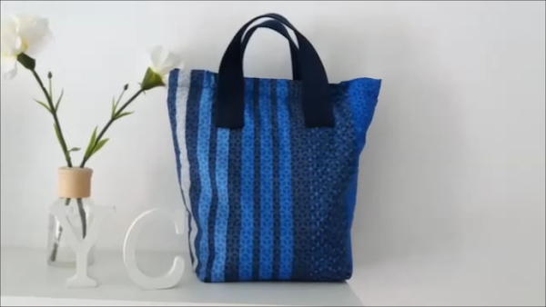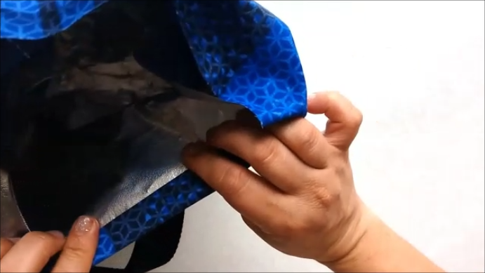 Y las vamos a coser en los extremos en forma de cuadrado y luego en "X" para reforzarlas. Hecho esto, doblamos a la mitad y cosemos primero por los lateras y luego cerramos las esquinas, tal como hicimos con la pieza isotérmica, damos la vuelta al bolso y se va a ver de esta forma: