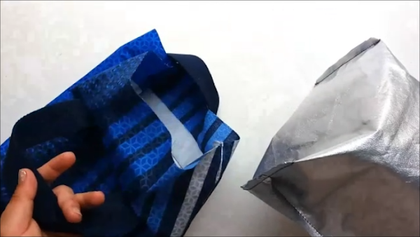 Una bolsa isotérmica de las que consigues en los supermercados. Con respecto a la bolsa isotérmica, lo ideal sería utilizar un tejido aluminizado como este: