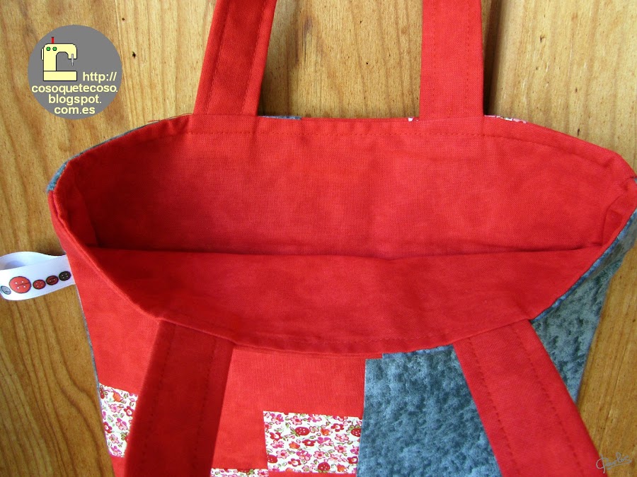 El asa va reforzada con "tejido sin tejer", un material que he encontrado en un bazar y que me encanta el cuerpo que da a la tela.