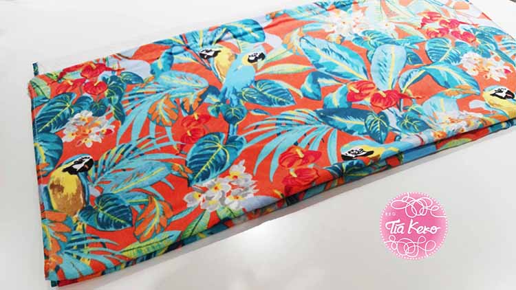 Lo primero que hicimos fue cortar el trozo de toalla para hacer el bolso. Doblamos la toalla por la mitad y cortamos la tela para que nos quede una bolsa de unos 52 cm de ancho por 38 cm de alto.