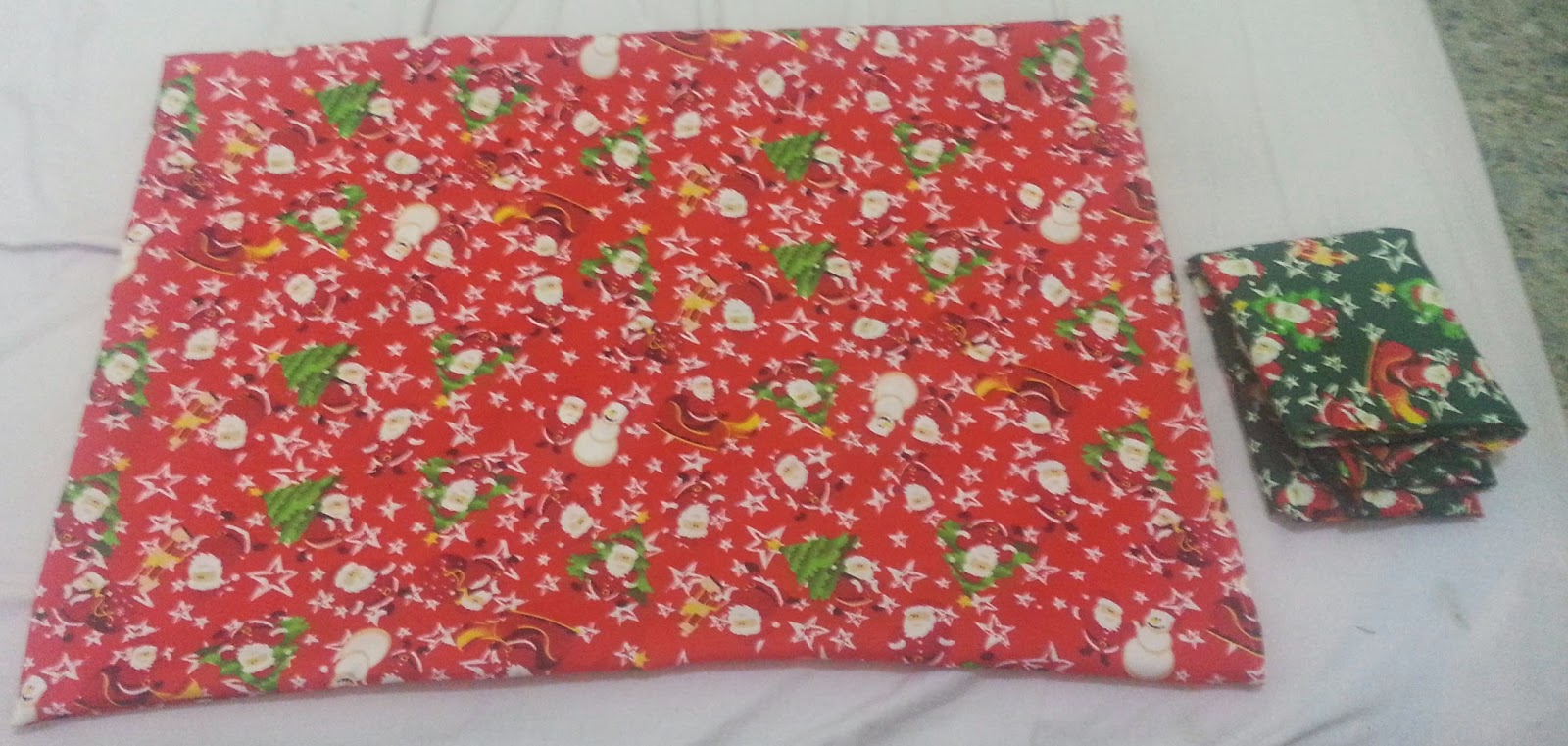 - Como mucho un metro de tela preferiblemente navideña (las mías son de medio metro pero la tela tiene un ancho de 1.5m)