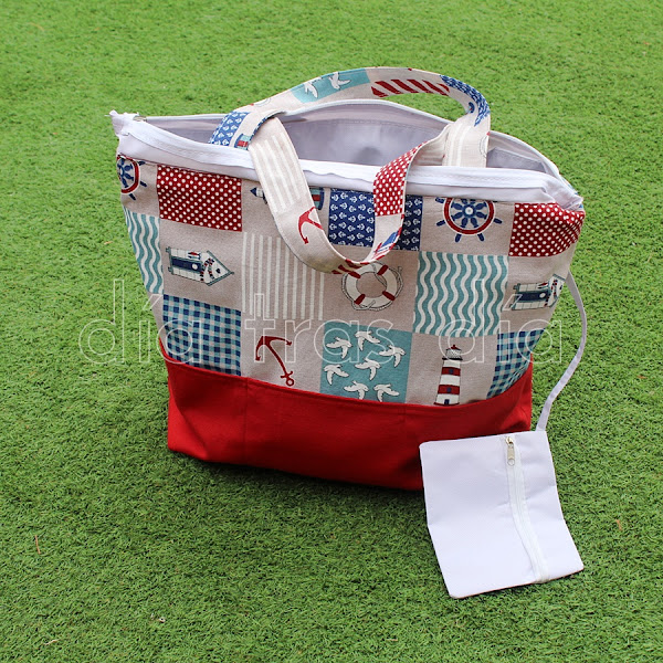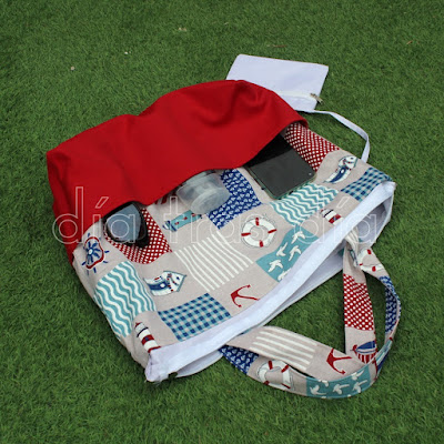 ¿Y queréis ver como quedó por dentro? Las dos las hice con la misma combinación de telas, con motivos marineros, muy apropiada para la temporada estival: