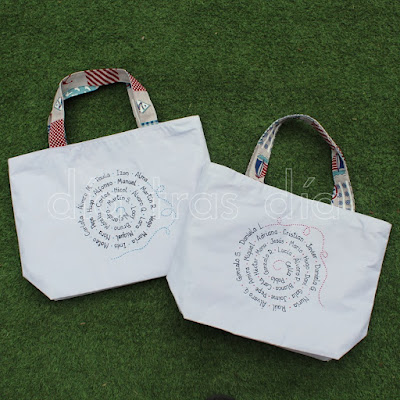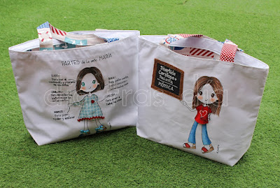 Pilise puso en contacto conmigo para encargarme dos bolsas, cada una decorada con uno de los modelos que suelo hacer para este tipo de encargos.