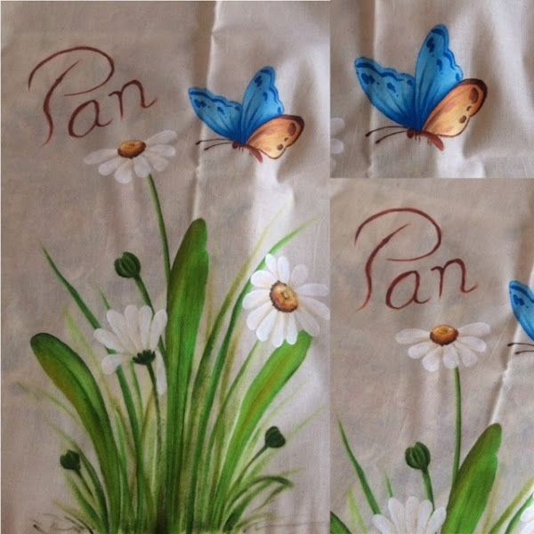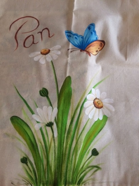 así quedan estas preciosas margaritas con una mariposa acercándose a ellas,alegre y bonita para tener siempre el pan a mano y la bolsa ala vista.