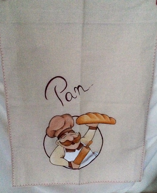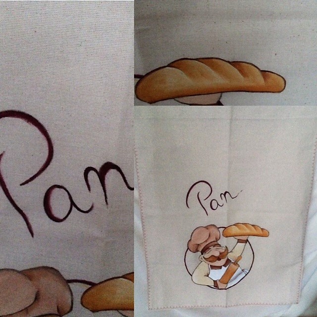 Composición detallada y ya el resultado final de como ha quedado esta bolsa de pan pintada con un guapo panadero.