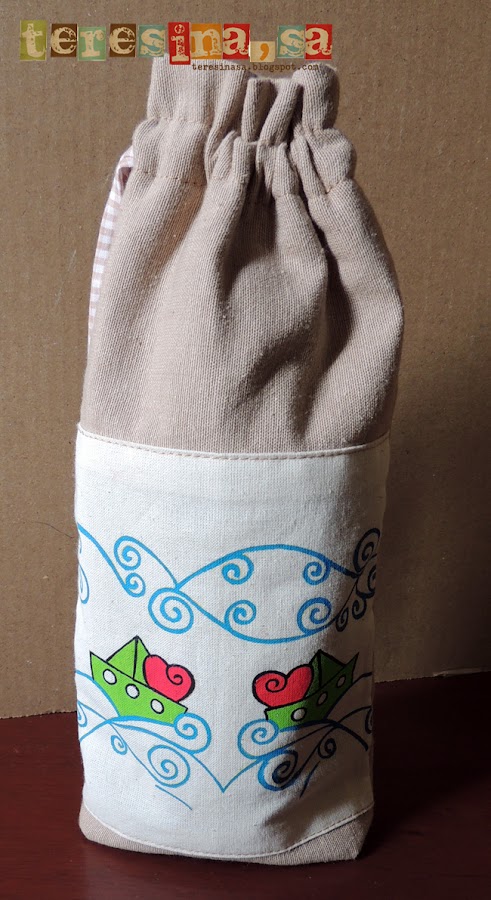 Aunque en la foto no se aprecia, la bolsa del biberón está acolchada de la misma forma que las que os enseñé en la entrada anterior reutilizando un paraguas.