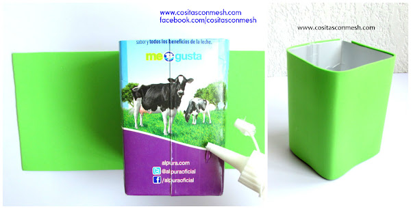 2.- Forramos nuestra caja de leche reciclada, para eso usaré foami color verde clarito. Usa silicón líquido para pegar el foami.