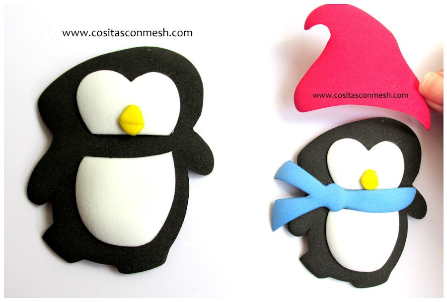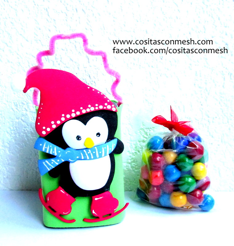 Hola amigos de "cositasconmesh ", hoy te quiero enseñar cómo hice un pingüino navideño en foami, para decorar las bolsitas de dulces de esta navidad, como en otras manualidades te sugiero reciclar materiales que ya tengas en casa, por ejemplo, botellas de plástico, latas, vasos o cajas de leche, ya veras lo lindo que quedan al decorarlos con motivos navideños.
