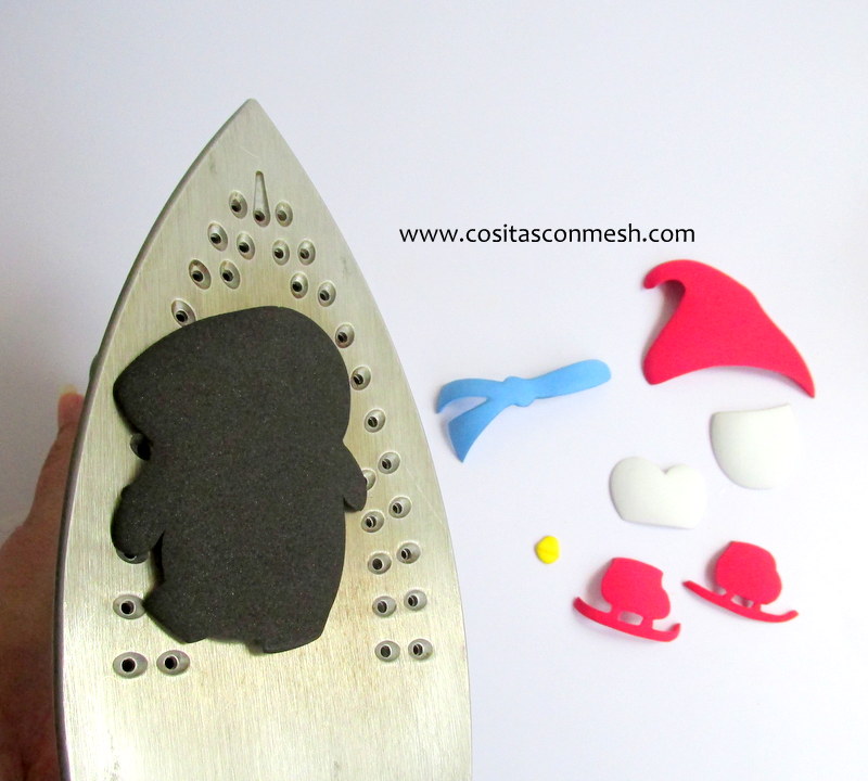 1.-Termoformamos los moldes del pingüino, usa una plancha semi caliente, dejamos unos segundos y empezará a inflarse o tener volumen el foami, apenas se vea asi, lo sacamos.
