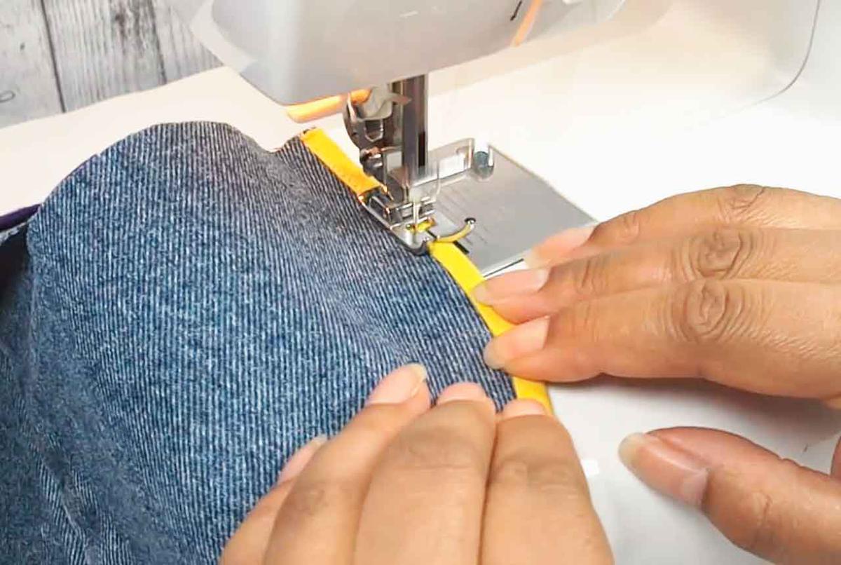 Coser el asa a la bolsita, guíate por la misma costura del bies de la bolsita.