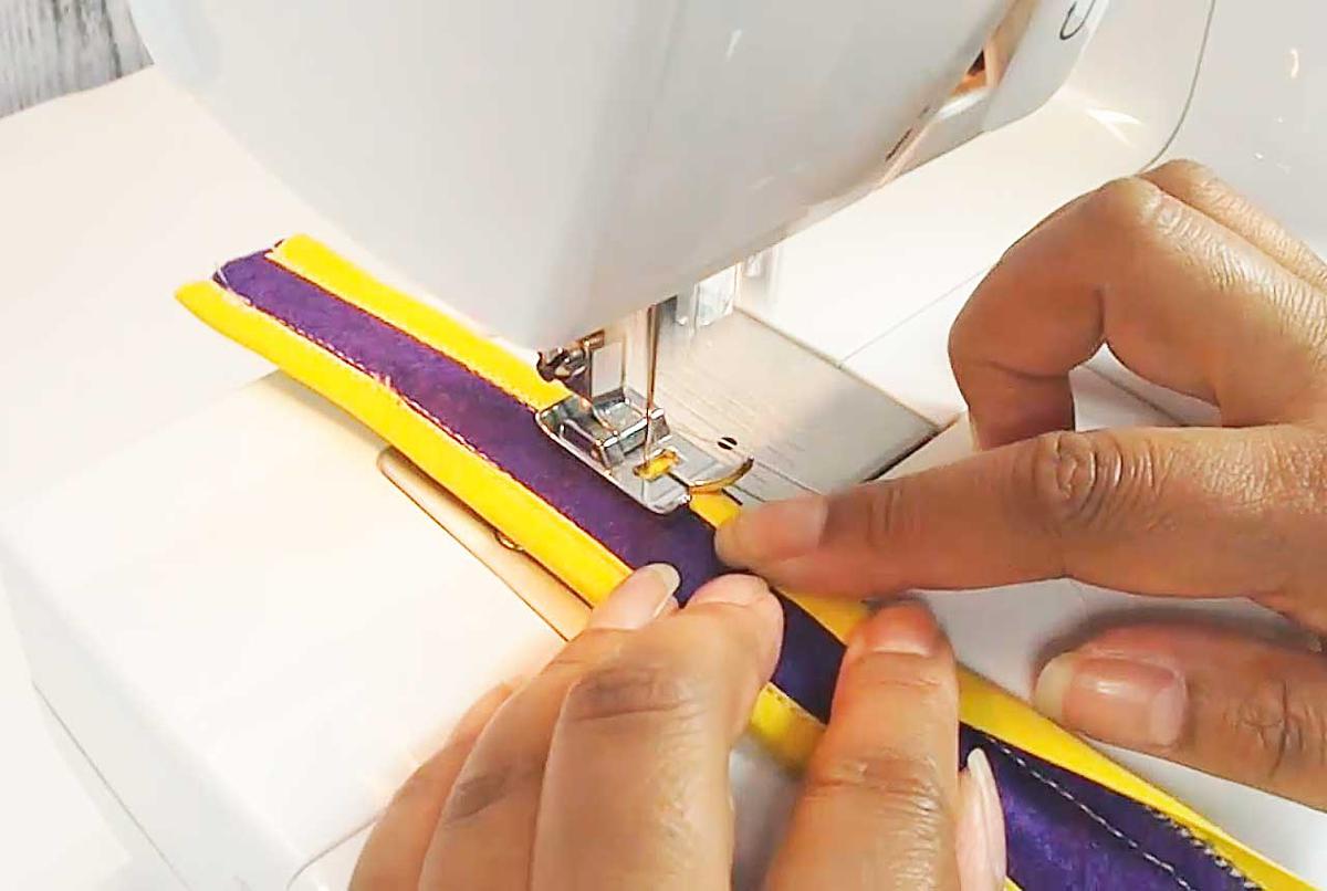Coser la cinta al bies a los laterales de las tiras, para decorar y fortalecer.