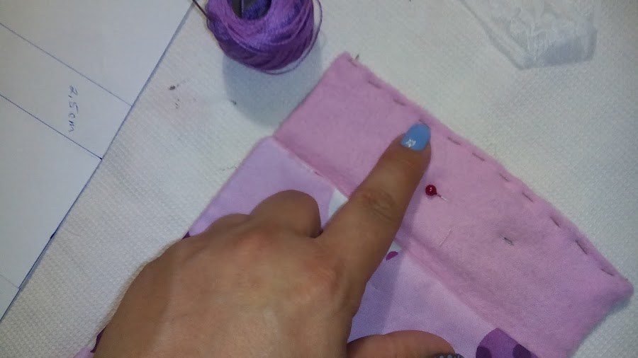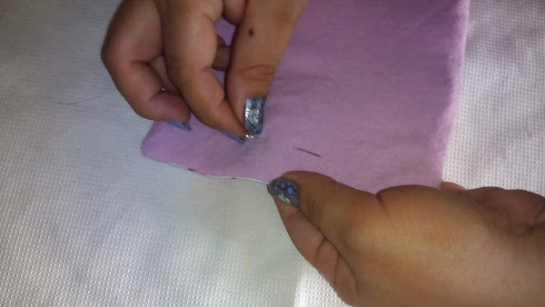 8. Para hacer esta puntada, he usado hilo de bordar y una aguja gruesa porque hay que coser también el foami que está dentro.