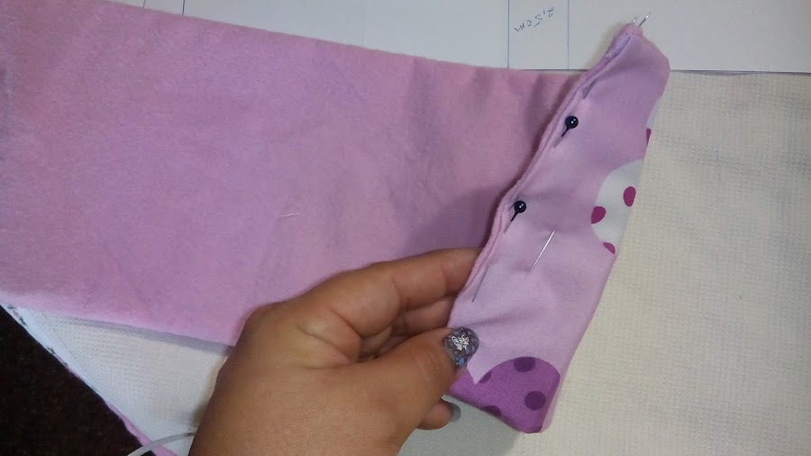 4. Se fija todo con alfileres para que no se muevan al momento de coser, lo mismo con la abertura...