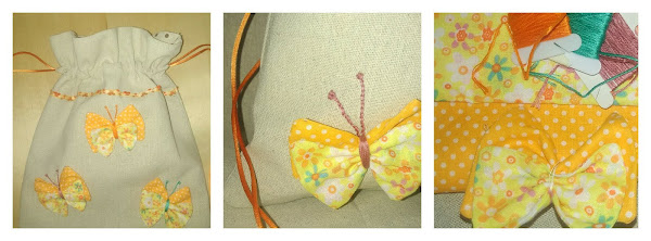 Quería customizar la bolsita y buscando buscando, encontré en el Blog de Elena unas mariposas que me parecieron divinas para lo que me traía entre manos, nunca mejor dicho! Aprovecho para felicitar a Elena, tiene unas manos de oro, todo, absolutamente todo lo que hace me encanta, digno de admirar!