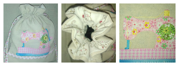 Otra técnica que he utilizado para crear las bolsitas es la de la aplicación, muy sencilla de hacer. Necesitaréis tela y fliselina de doble cara. La pegáis a la tela y coséis alrededor con punto festón.