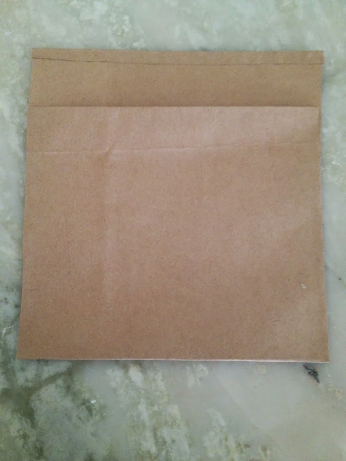Doblamos al medio de la siguiente manera, dejando una solapa arriba para cerrar.