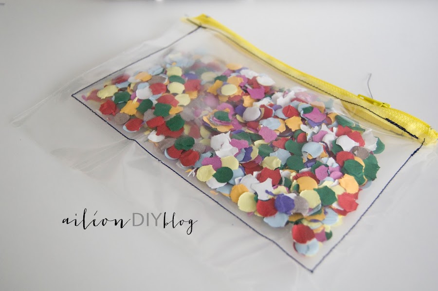 Cosemos dos de los lados de forma que quede uno todavía abierto. Es por ahí por donde meteremos el confeti, las lentejuelas o lo que haga falta.