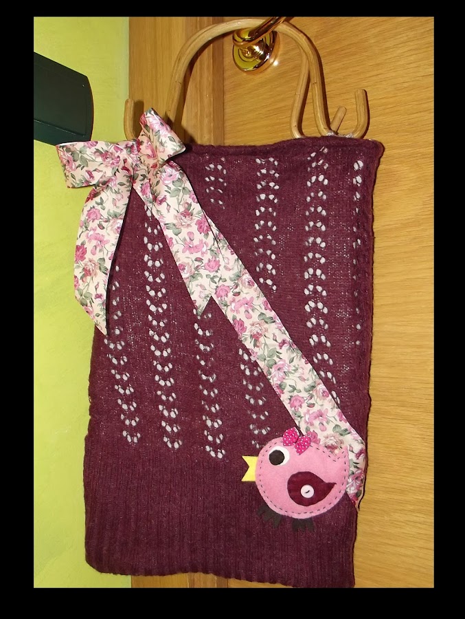 ¿Alguien diría que esta bolsita pajarita antes era una chaqueta? a que no jejeje es lo que me encanta de reciclar.