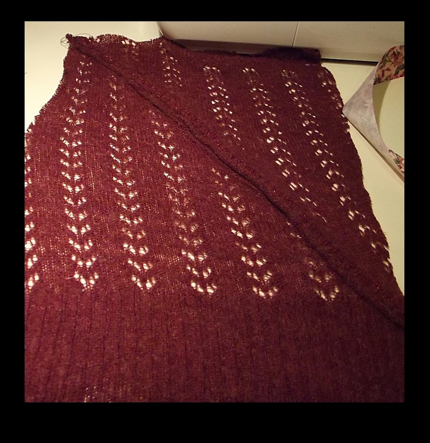 Como veis con la parte de la espalda me salía una pieza entera pero para conseguir el otro trozo tenía que unir las dos partes delanteras como os indico en la fotografía, y para ocultar esa costura le he puesto una cinta de flores en tonos que combinan perfectamente con el color de la tela de punto