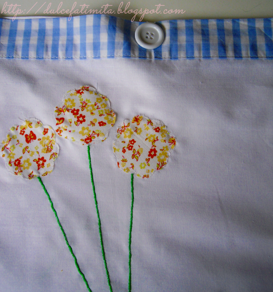 Los tallos de las flores los hice también con la máquina, un zig zag muy estrecho. Primero dibujé los tallos con un boli, para tener una guía cuando le pasara la máquina.