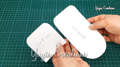 A la pieza de 8x8 cm le vamos a redondear ligeramente solo dos de sus esquinas. Te muestro como queda el patrón en la foto de abajo. De todas forma en el vídeo tutorial te explico mejor y paso a paso cómo hacer el patrón.