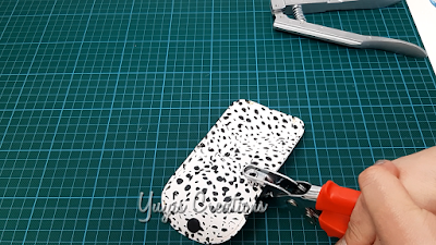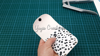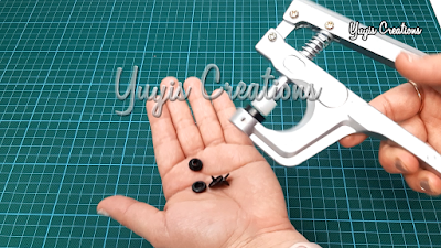 Ahora marcamos donde va a ir el broche y el ojal de metal y los ponemos: