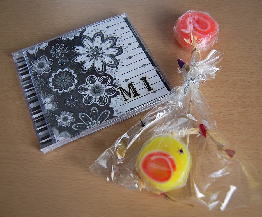 De parte de Tina, además de unos jabones monísimos con forma de piruleta, me regaló un mini-album metido dentro de un CD, muy curioso... era la primera vez que veía un trabajo así...