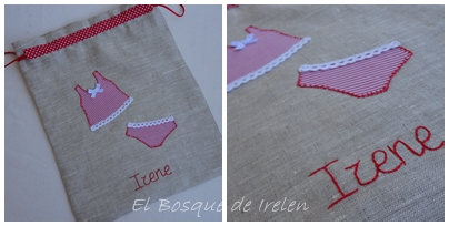 Y os cuento todo esto porque tenía que llevar la ropita en bolsas etiquetadas y yo hace tiempo que quiero hacer una bolsita de lencería para guardar la ropita sucia cuando nos vamos de viaje, así que aproveche la ocasión y me puse manos a la obra, o mejor dicho a la máquina. Tengo que decir que la señora Singer y yo hemos limado asperezas y nos estamos convirtiendo en grandes amigas!! Este es mi primer proyecto "serio" de costura y seguro que no el último.
