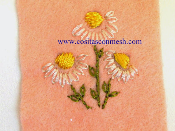 5.-Terminamos de bordar sobre la bolsita las 3 margaritas.