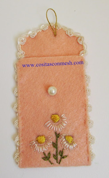 Para personalizar esta bolsita, elegí fieltro y unos hilos de bordar, en el bordare unas bonitas margaritas, algo tan sencillo y fácil puede hacer que nuestro regalo se vea muy delicado,