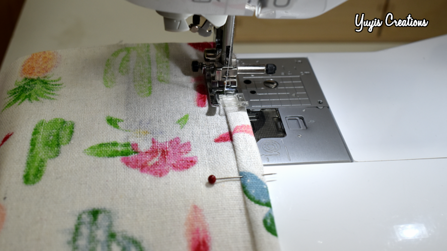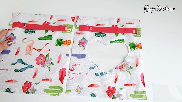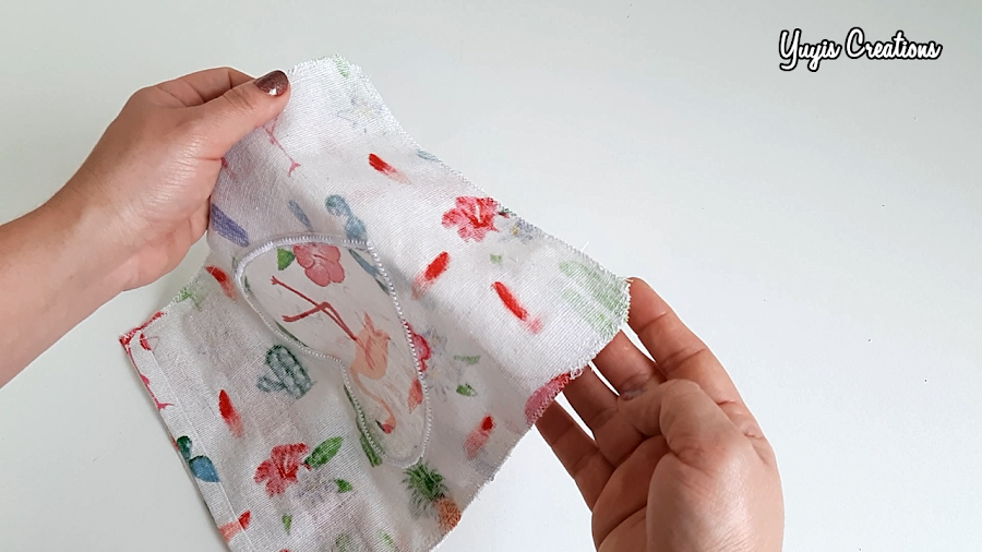 Ahora ponemos una pieza de tela encima de la otra con los derechos enfrentados y cosemos por los lados y por debajo. Rematamos con un zigzag por el borde y damos la vuelta.