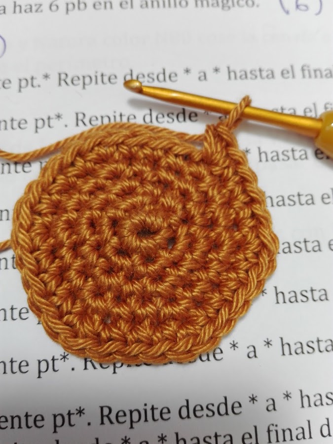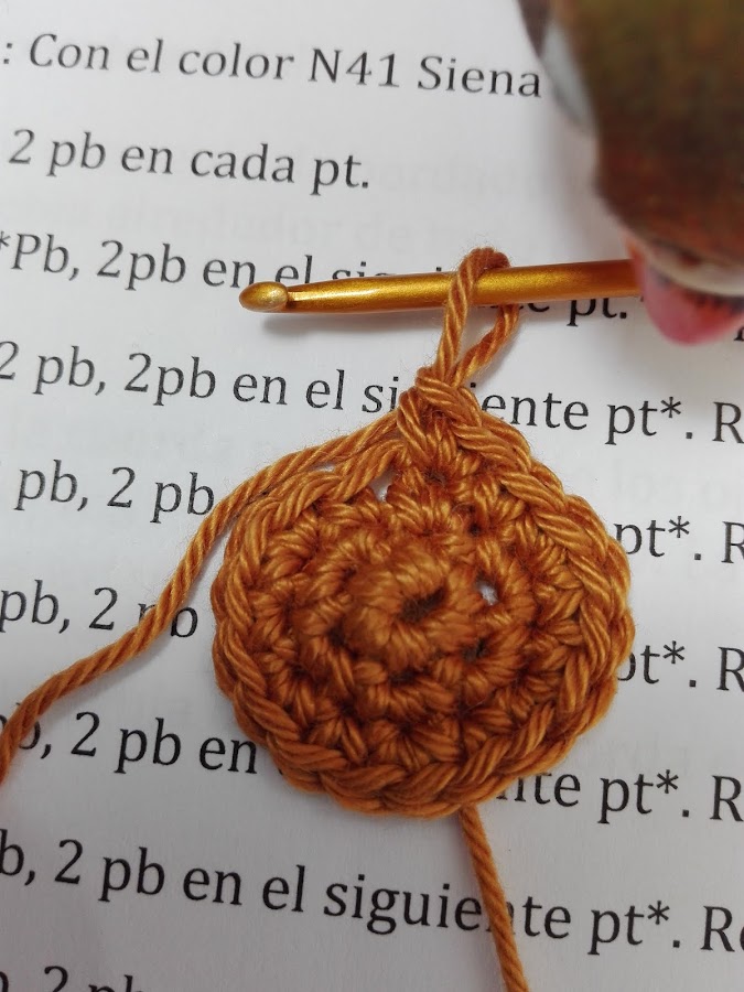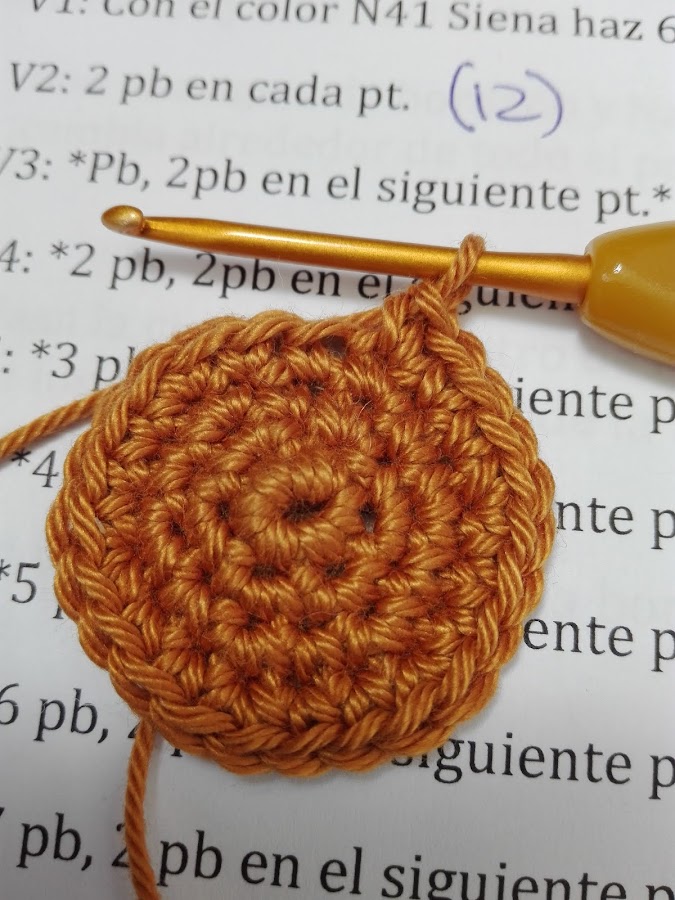 V2: 1 pb en la 2ª cadeneta, saltamos 2 pt y el en el siguiente hacemos 7 pa. Saltamos 2 pt y en el siguiente hacemos 7 pa. hasta acabar (yo en mi bolsito hice 5 pa porque me quedaba muy rizada)