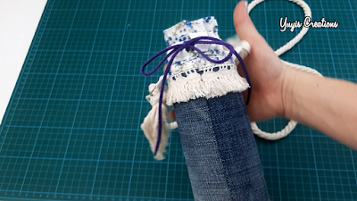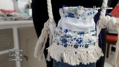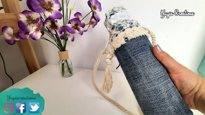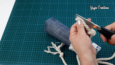 Las asas las meteremos por las argollas, cerramos un un nudo sencillo y deshilachamos para darle un poco de gracia. Y Listo!