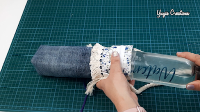 Vamos a medir primero el contorno de la botella, a esta medida le sumamos 3 cm.