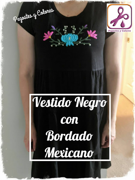 Les invito a visitar el trabajo de Diana, Vestido Negro con Bordado Mexicano, un trabajo precioso en colores muy armoniosos y a contraste sobre el fondo negro del vestido