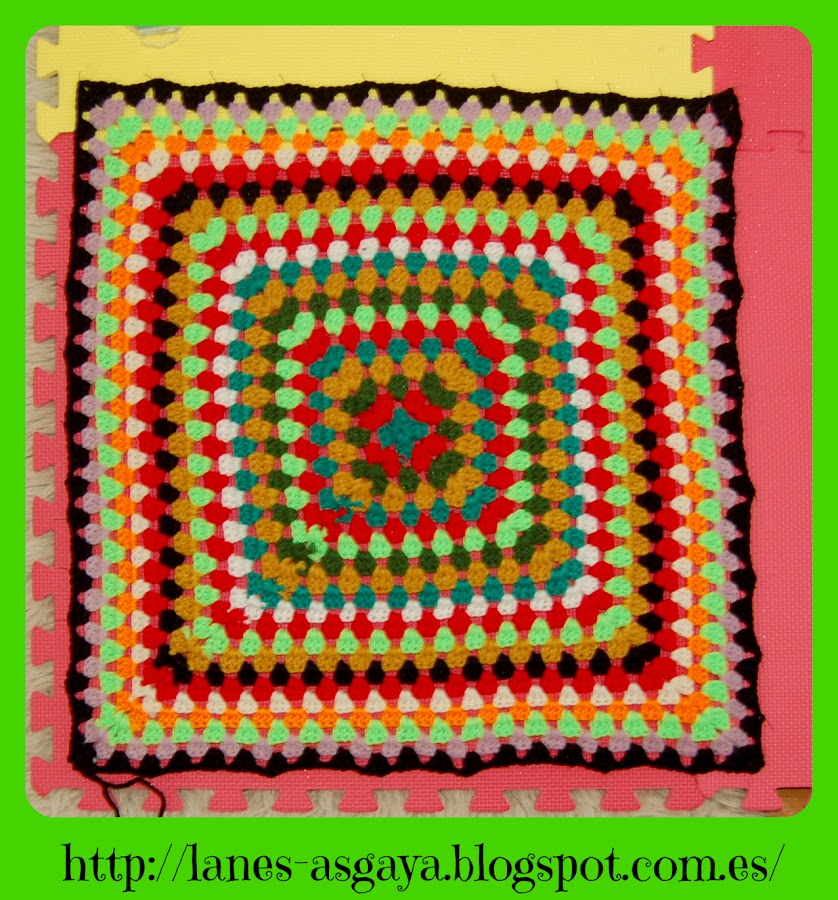 Sólo tendréis que tejer un granny de 60 x 60 cm (yo lo bloqueé, porque quedaba un poco girado)