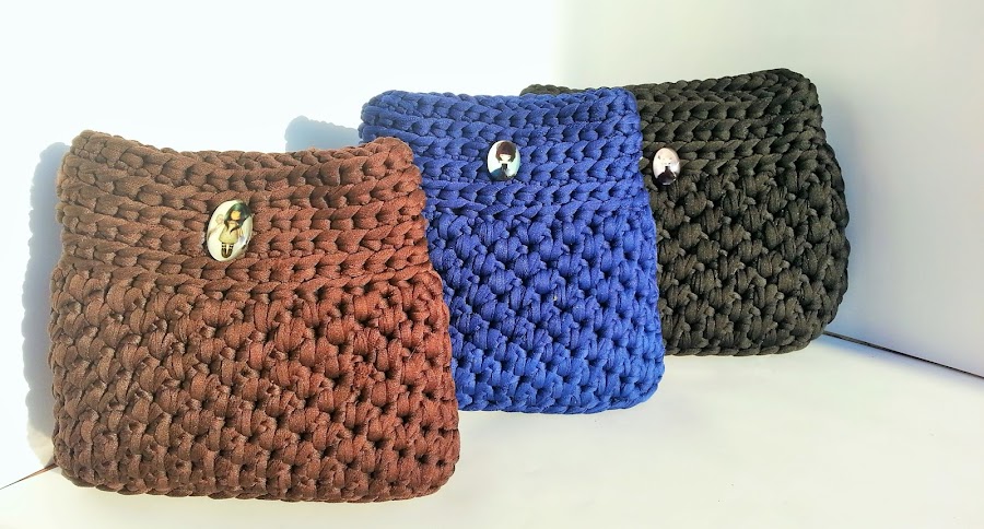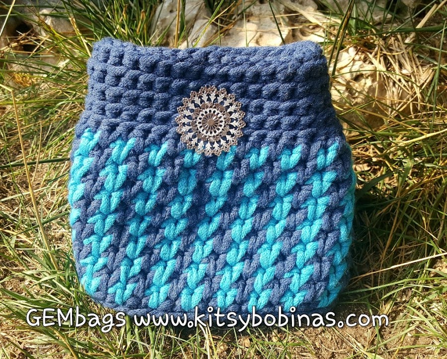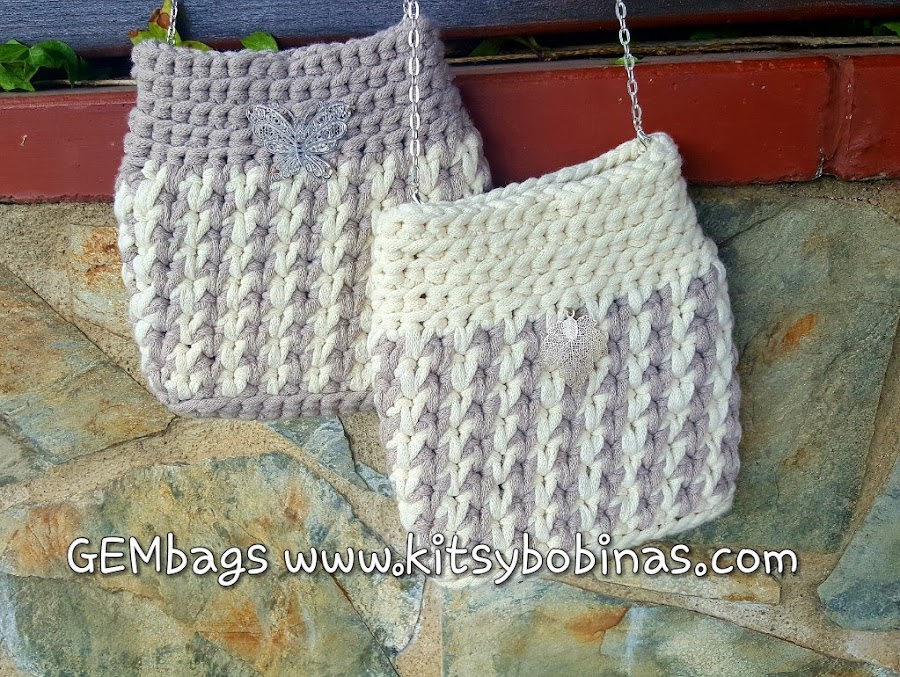 Y estas fotos se corresponden al modelo original realizado con el trapillo pluma GEMbags en varios colores.