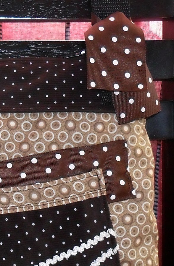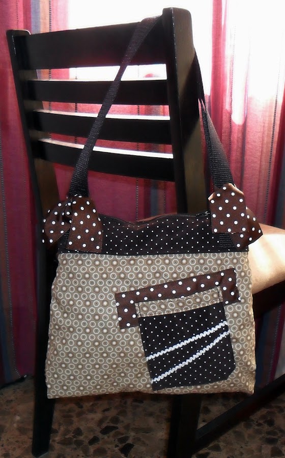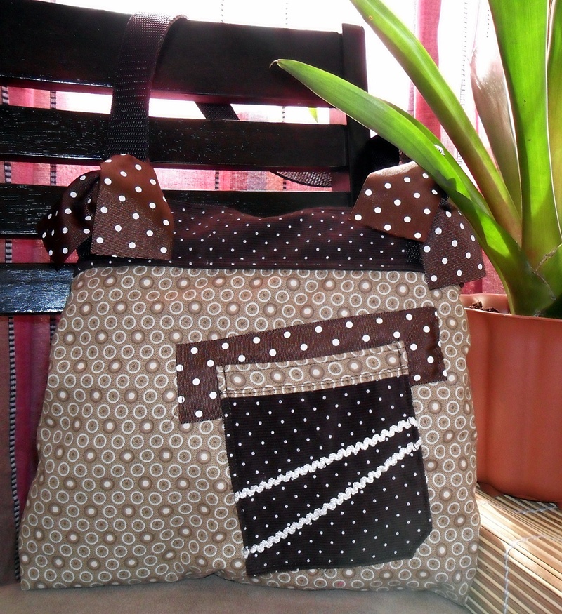 El Bolso Brown combina perfectamente telas en diferentes estampados, tonos beige, marrones, chocolate, lunares y círculos se unen para crear un efecto único.