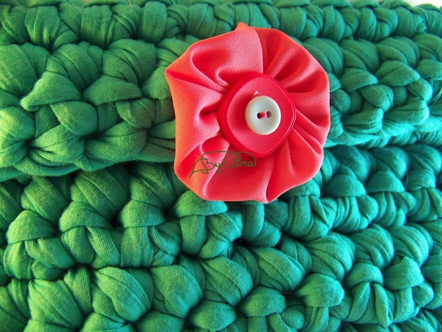Do you like to crochet using t-shirt yarn? Look what I"ve done during this rainy day: a clutch bag. I took the idea from missoluciones-pangala blog, but I modified the pattern. As you can see on the photos, I divided the piece on 3 parts; two to make the bag and the last one to make the flap. Try it!