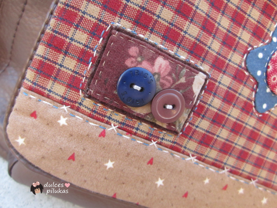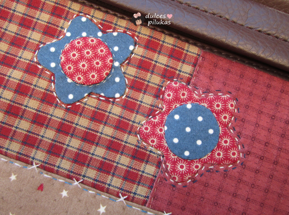 He utilizado 6 telas diferentes combinadas en granate, azul y marrones.