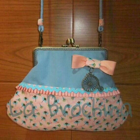 Y con mis estupendas telas he emprendido una nueva tarea, la realización de bolsos con boquilla. Con cadena a la que he entrelazado una cinta de terciopelo para que le de un toque cálido y agradable del mismo color caramelo que se encuentra en la tela. Para que quedara más bonito lo he adornado con una flor de fieltro y encima le he cosido un botón que h ...