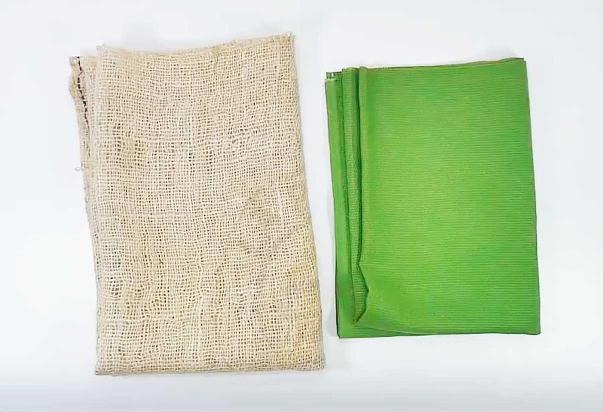 Recortar el saco de la misma medida que la tela y guarda el sobrante.