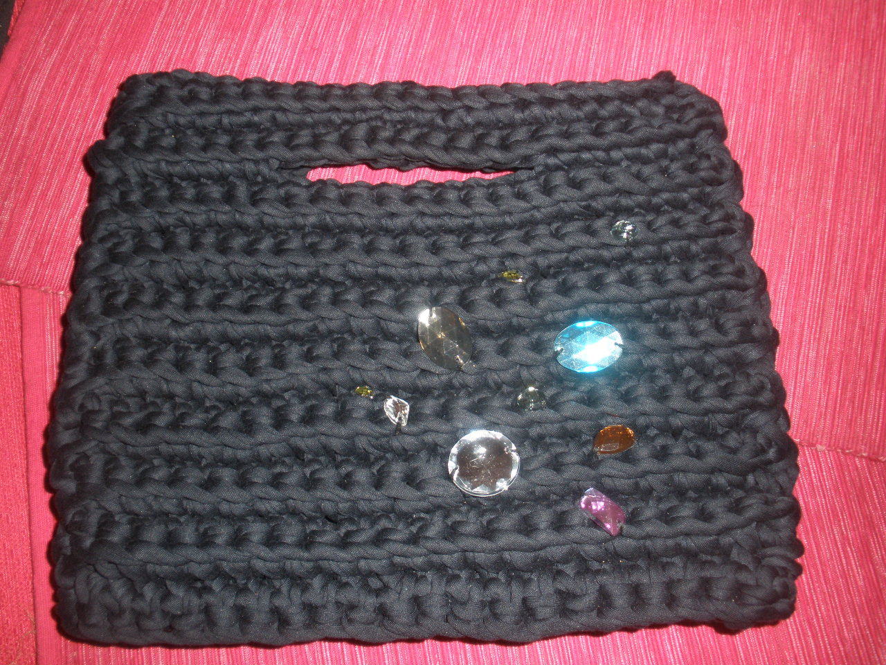 Este bolso es super sencillo ,con una aguja de croché bien grande , un ovillo de trapinho gigante ( gasta mucho) y lo que queráis para decorarlo, estará listo rápidamente.Aunque eso si, después las manos necesitan algunos días de descanso.