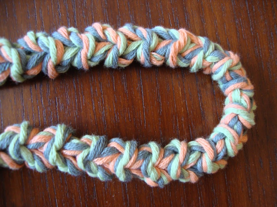 En cuanto se practica un poco resulta sencillo y queda como un trenzado muy aparente que me encanta y admite muchos usos.