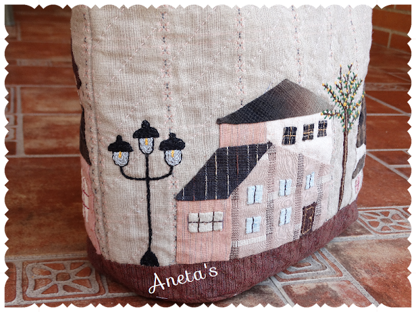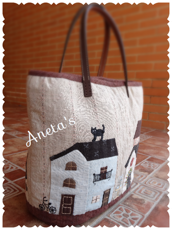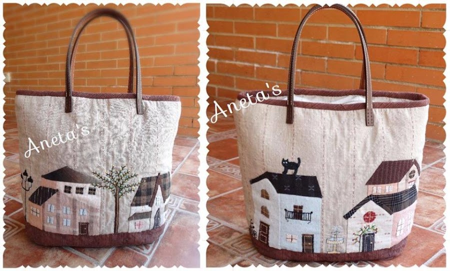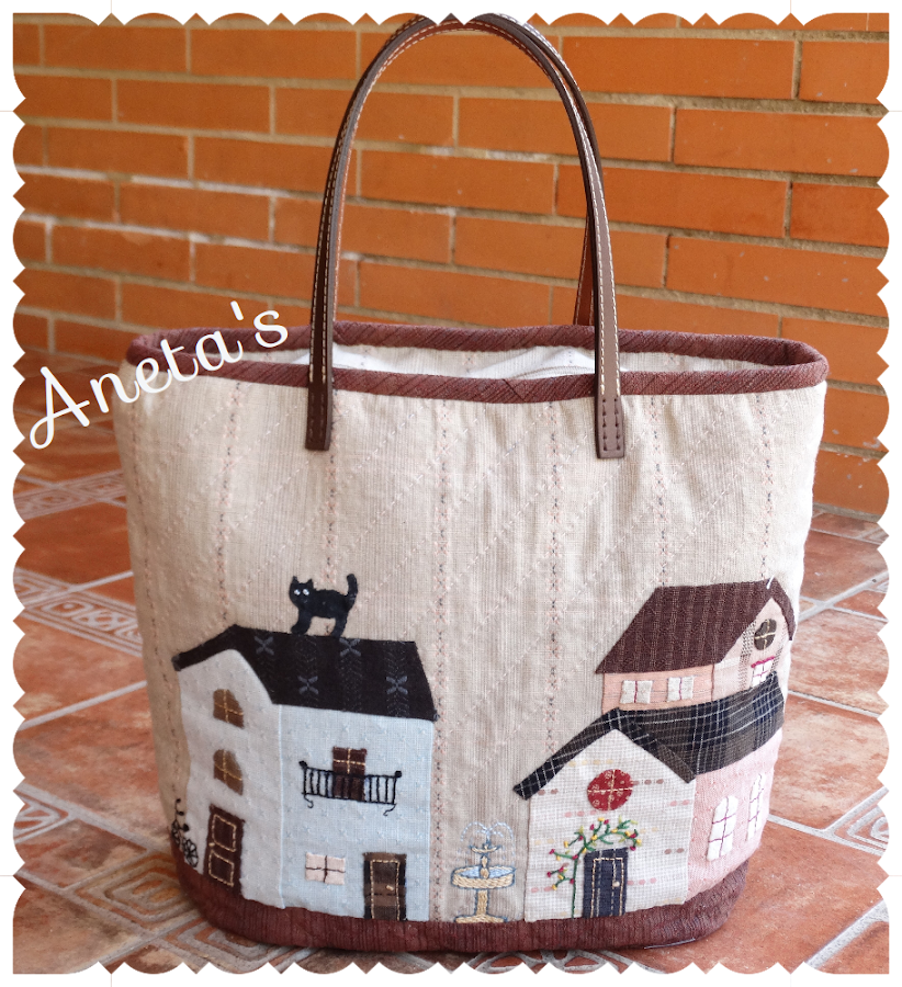 Como creo que os he dicho en algún momento, llevaba mucho tiempo queriendo me apuntar, pero estoy en tantos cursos, que no encontraba tiempo para uno más....hasta que un buen día llegó mi profe con uno de sus bolsos de patchwork y ya no me pude resistir... Fue este bolso de casitas, me gustó tantísimo, que desde ese momento me lié la manta a la cabeza y me apunté a las clases de patchwork. Desde ese momento me dí cuenta que ya no podía retrasarlo más, solo esperaba a tener tiempo, pero entendí que ,siendo como soy, jamás iba a tener ese preciado tiempo.
